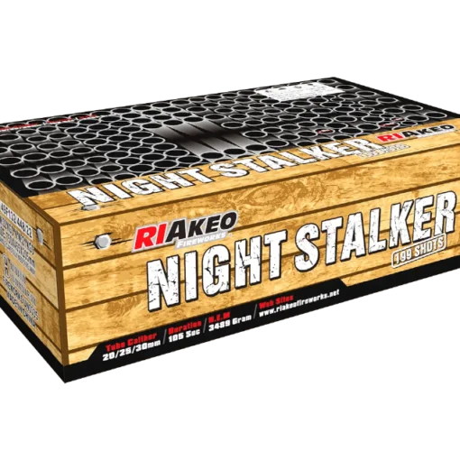 Night Stalker by Riakeo Fireworks delivers 199 vibrant shots in a breathtaking 105-second display. Perfect for Bonfire Night, now available in the UK.