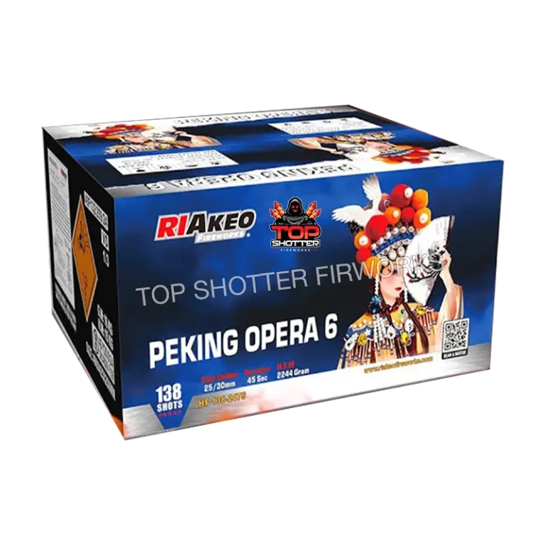 Peking Opera 6 by Riakeo Fireworks delivers 138 explosive shots in a dazzling 45-second display. This premium firework has arrived in the UK for 2024. Order now!
