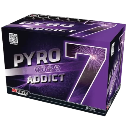 Pyro Addict 7 by Riakeo Fireworks is a powerful 45-shot F3 barrage featuring a substantial 922.5g NEC for impressive aerial